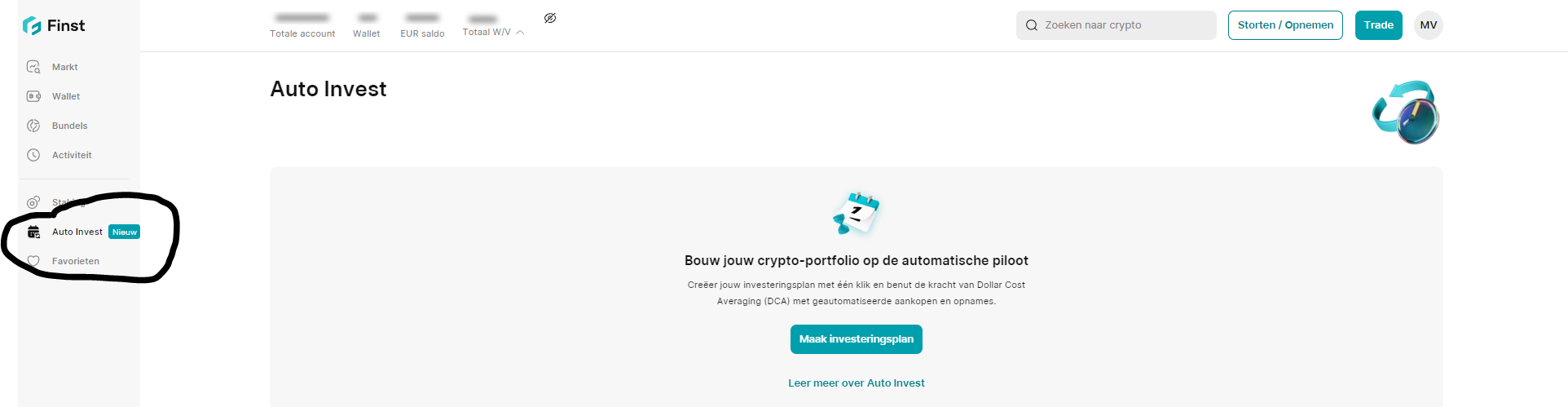 Gelukkig heb ik grondig onderzoek gedaan en een tool gevonden die ons hierbij kan helpen: Auto Invest van Finst. Deze functie stelt je in staat om zonder al te veel gedoe te investeren in crypto.
