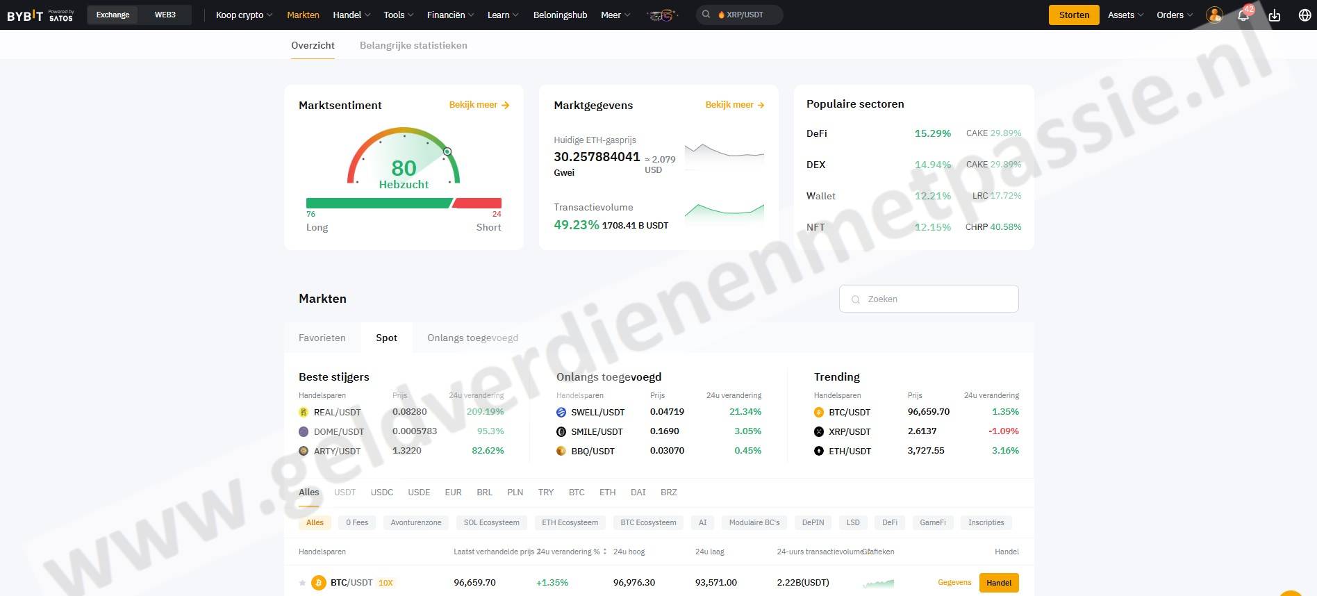 Crypto signalen zijn te koop 25% via Bitvavo en 75% via Bybit. Lees hier mijn review over Bybit.