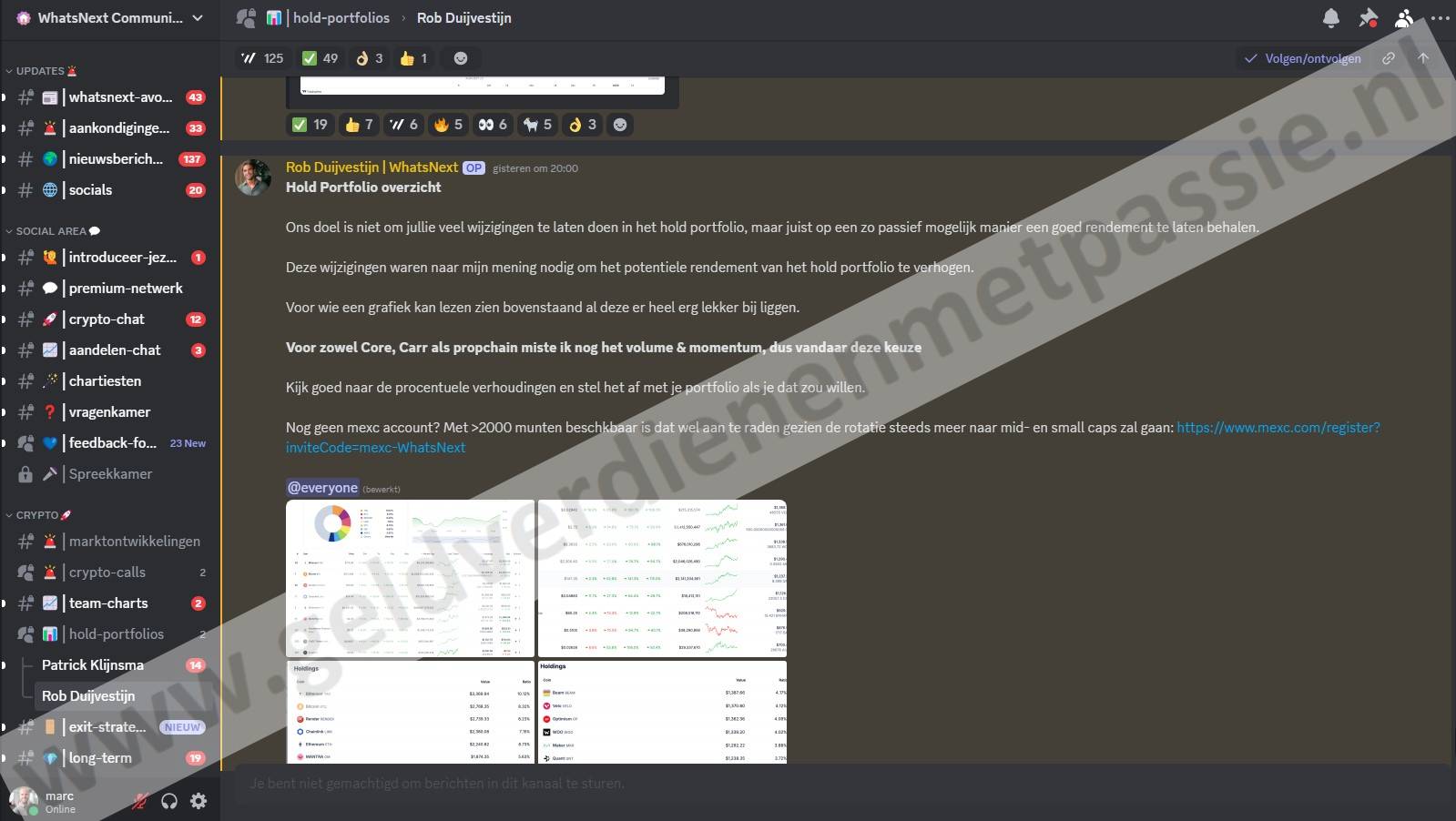 Je krijgt veel voor je geld. Er zijn twee livestreams elke week waar je vragen kunt stellen. Ook krijg je toegang tot speciale kanalen om over crypto te praten. Dit kan jou helpen beter te beslissen wanneer je koopt of verkoopt.