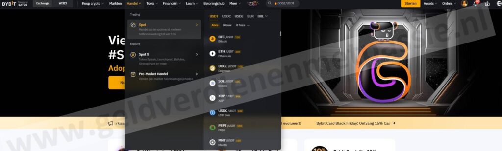 Bybit biedt spot trading met meer dan 650 cryptomunten. Je kunt hier populaire coins zoals Bitcoin en Ethereum kopen en verkopen. Ook zijn er veel kleinere altcoins beschikbaar. Het handelsplatform is makkelijk te gebruiken. Je ziet direct de koersen en kunt snel orders plaatsen.