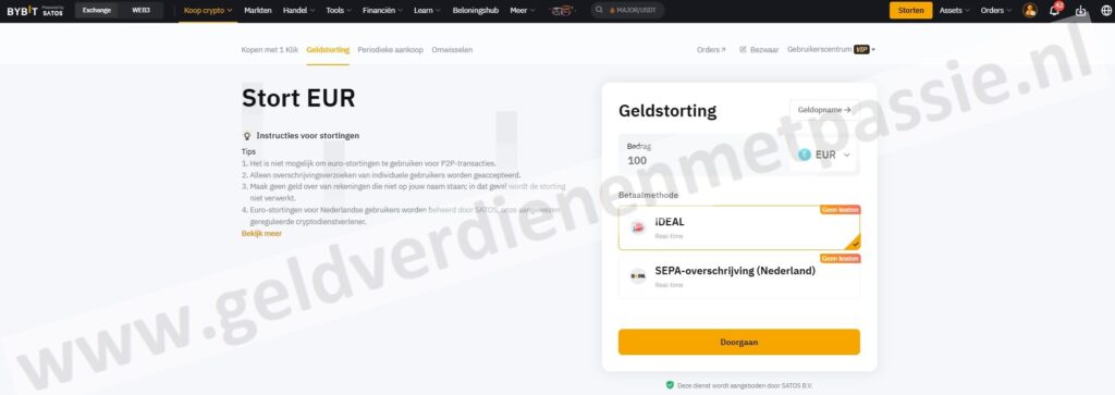 Bybit rekent geen extra kosten voor het openen van een account. Je betaalt ook niets voor het storten van geld via iDEAL. Dat is fijn, want zo houd je meer over om mee te handelen.
