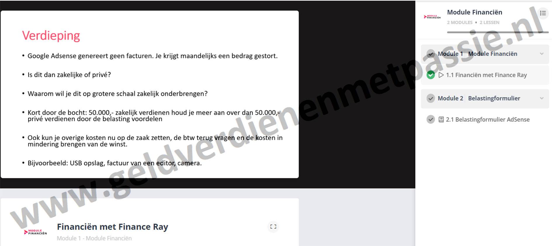 Met een Cash Cow Channel is uiteraard is doel om geld te gaan verdienen en dat is precies de reden dat Jelline er een financiële module heeft bij gedaan. Hier ga je dus alles leren over bijvoorbeeld de btw aangifte of het doen van je belasting.