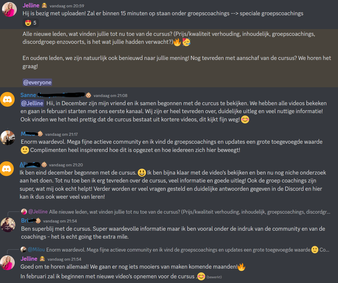 Daarnaast krijg je toegang tot ontzettend veel bonussen zoals groepscoaching en een community met meer dan 2000 gelijkgestemde op discord. Hier kan je onbeperkt vragen stellen en daarnaast zie je successen van andere en kan je ze zelf gaan delen in de toekomst.
