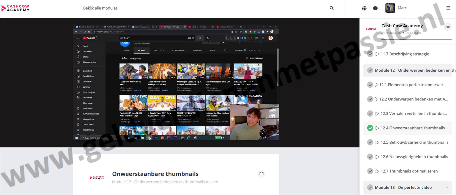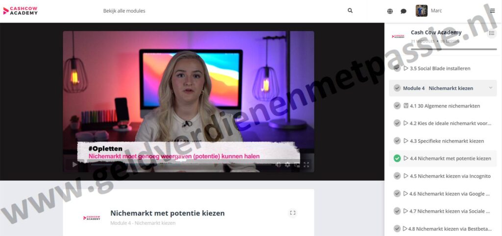 De Cash Cow Academy is een online cursus waar je volledig in eigen tempo door maar liefst 95 lessen en 21 modules alles gaat leren over het opzetten van een Cash Cow Channel. Daarnaast krijg je waardevolle bonussen zoals een discord community met meer dan 2000 gelijkgestemde en groepscoaching.