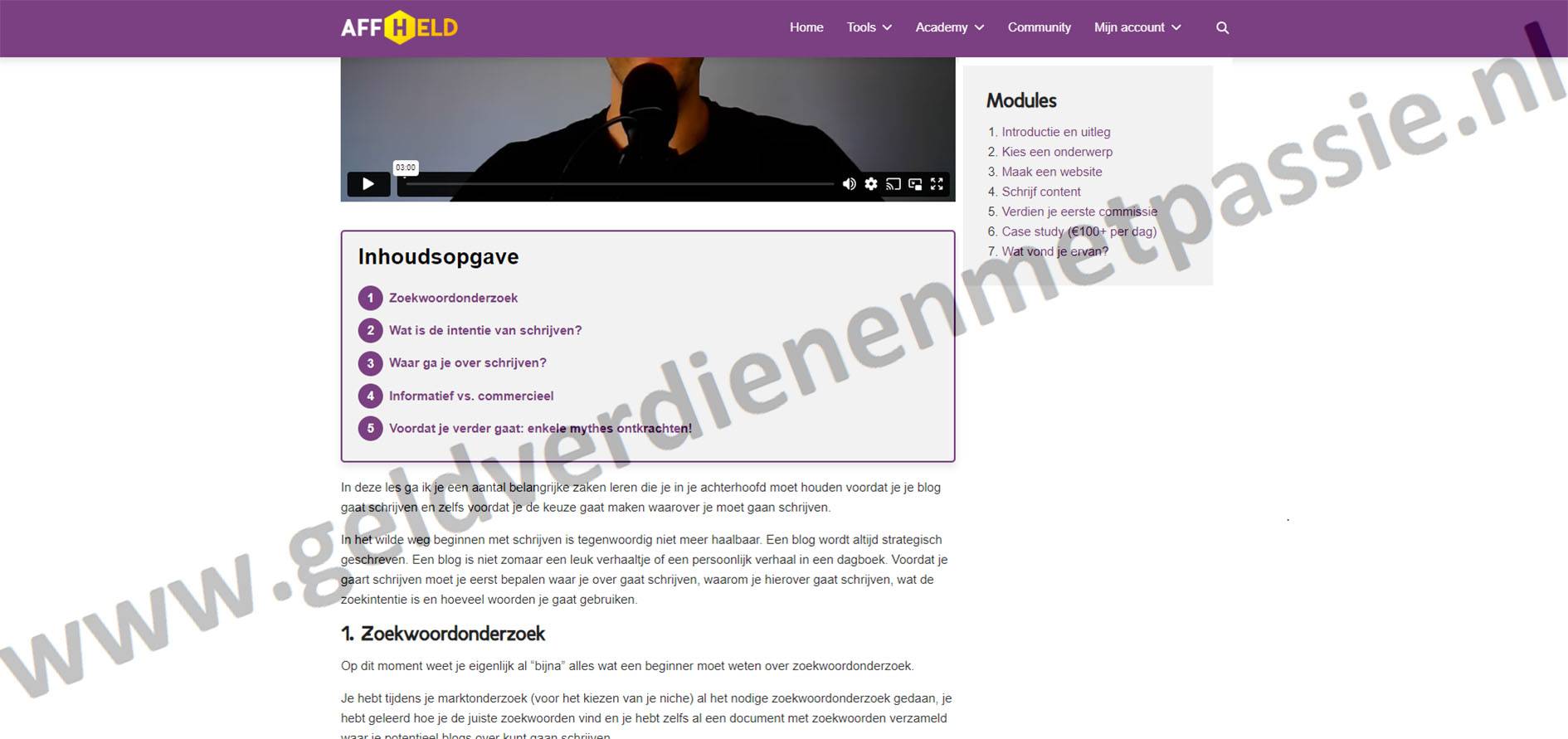Op deze foto zie je Module 4: Schrijf content van Cursus Affiliate Marketing 101 van Jari Dohmen (Affiliate Held)