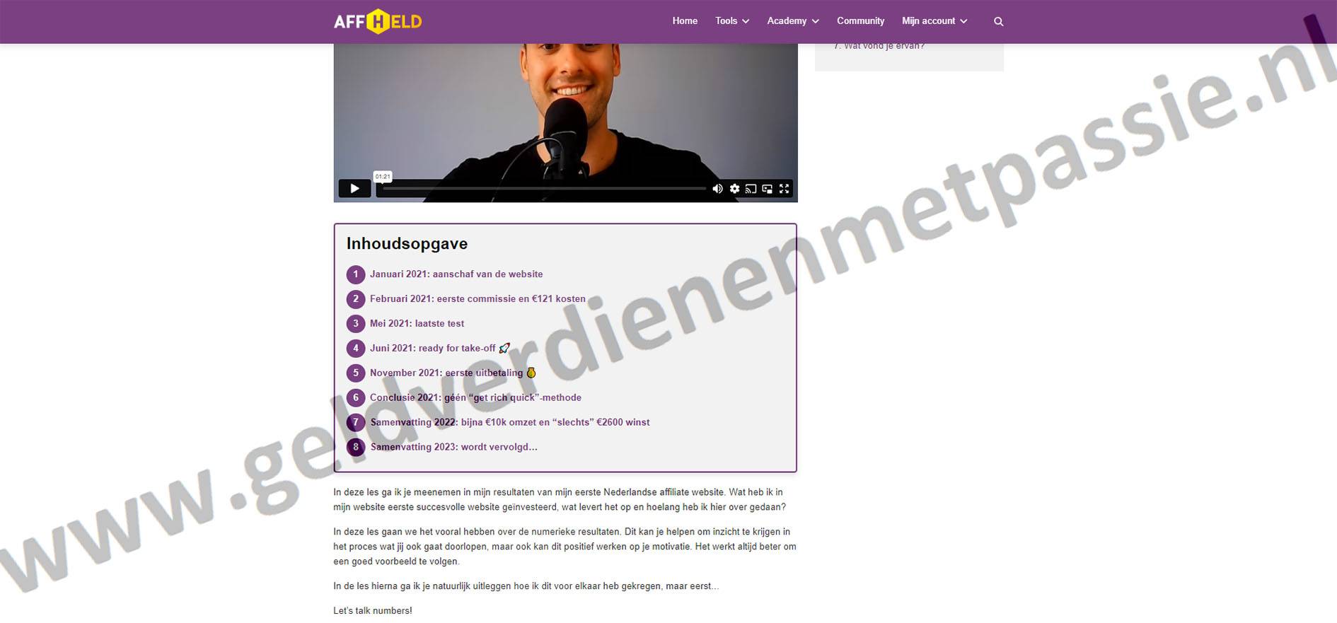 Op deze foto zie je Module 6: Case study (€100 per dag) van Cursus Affiliate Marketing 101 van Jari Dohmen (Affiliate Held)