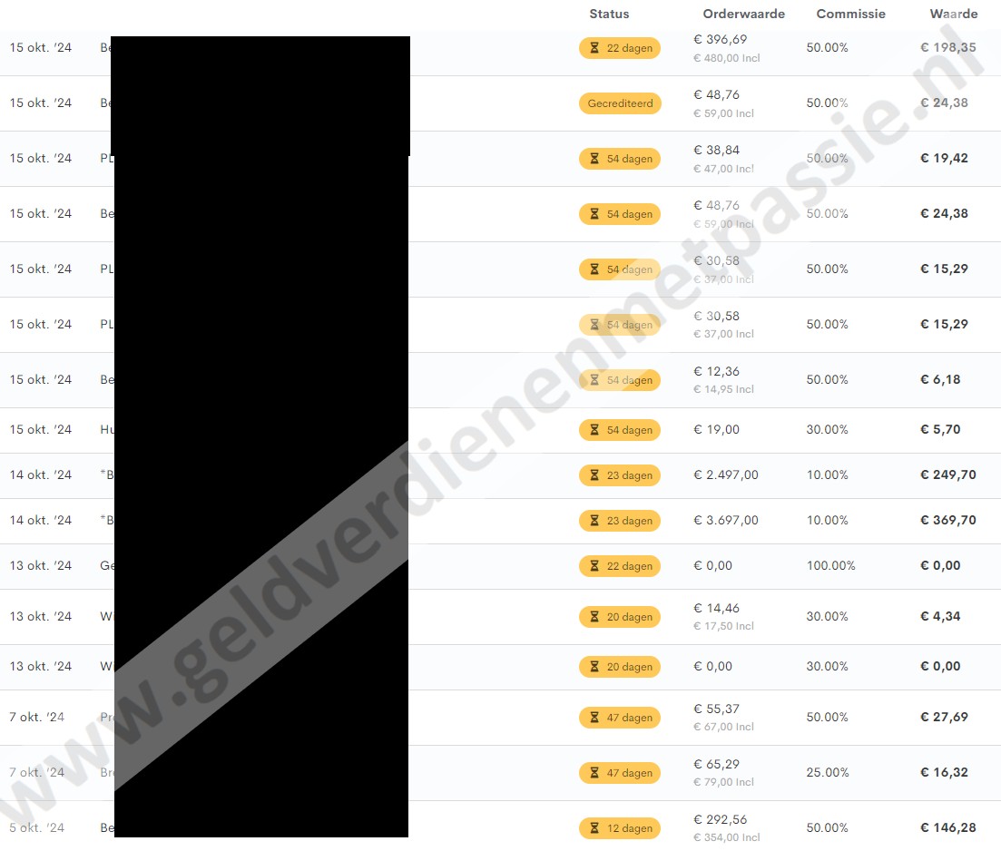 Jij brengt dus klant en verkoper samen door het geven van maximale waarde in de vorm van bijvoorbeeld blogs en reviews en daarvoor word je beloond met commissies zoals onderstaande voorbeeld. Onderstaand een voorbeeld van een weekje bij Plug&Pay waar je gewoon gratis producten kan promoten.