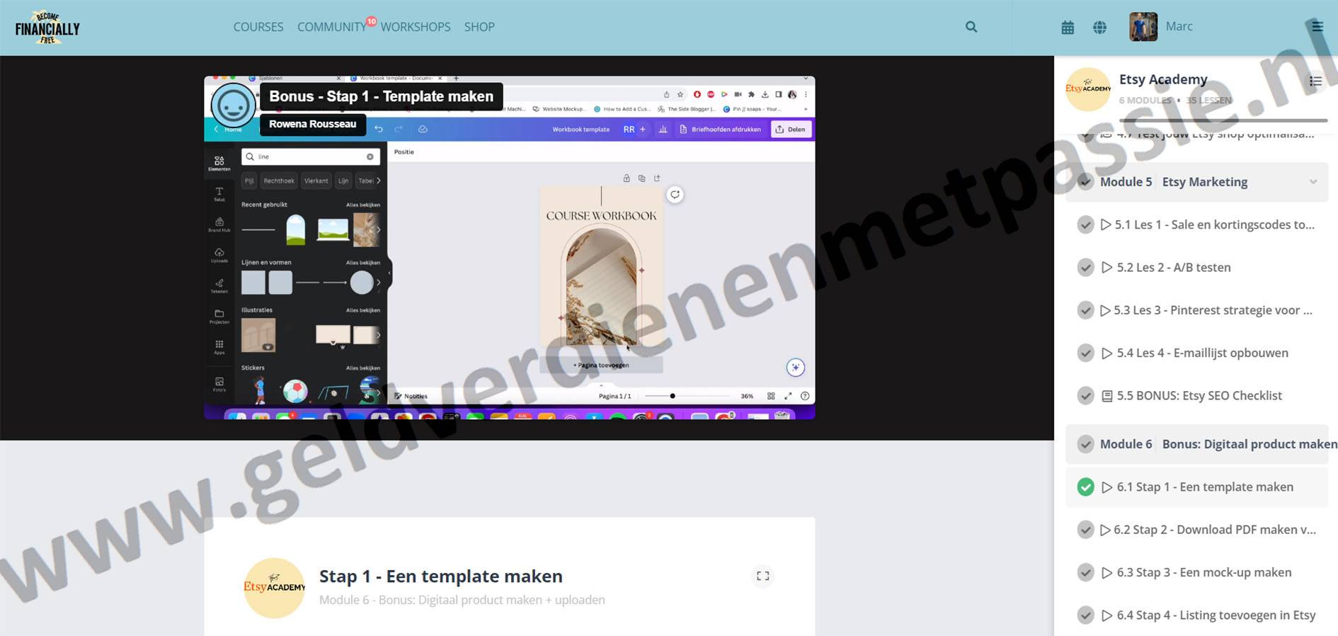 In de Etsy Academy krijg je een bonus over het maken van digitale producten. Je leert stap voor stap hoe je een template kunt maken in Canva. Ook leer je hoe je de template verkoop-klaar maakt en toevoegt aan je Etsy shop.