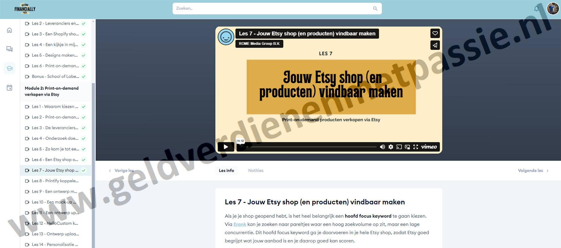 - Daarnaast is de Etsy Academy aan te schaffen als éénmalige betaling of in het lidmaatschap Become Financially Free Membership met nog 20 andere cursussen.