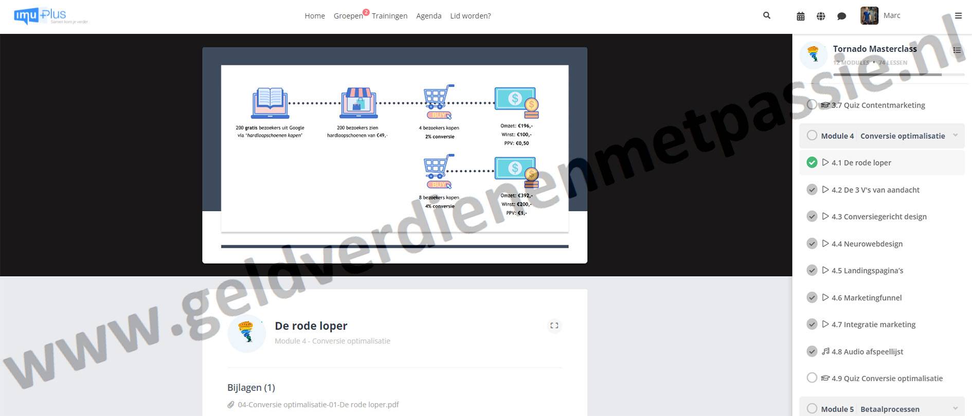 Bij IMU+ zijn de volgende cursussen inbegrepen: SEO, Conversie optimalisatie, Membership & community building, Facebook marketing en Productlanceringen.
