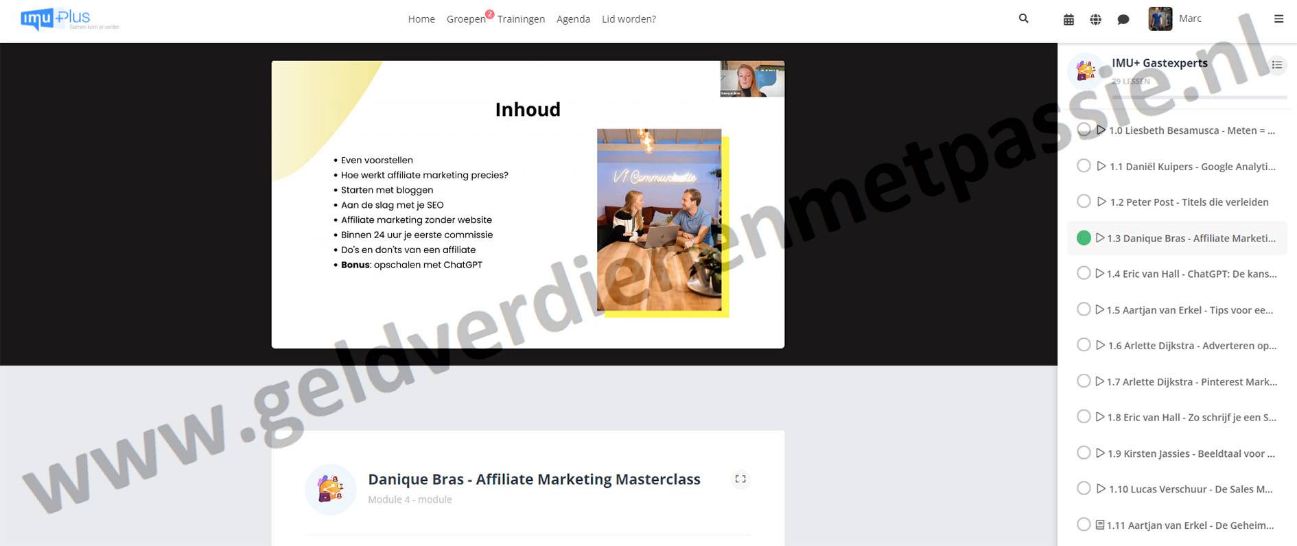 IMU+ is een community waar je kennis kunt delen en kunt netwerken met andere mensen die geïnteresseerd zijn in online marketing. Het biedt maandelijkse live trainingen waarbij je vragen kunt stellen en antwoorden kunt krijgen.