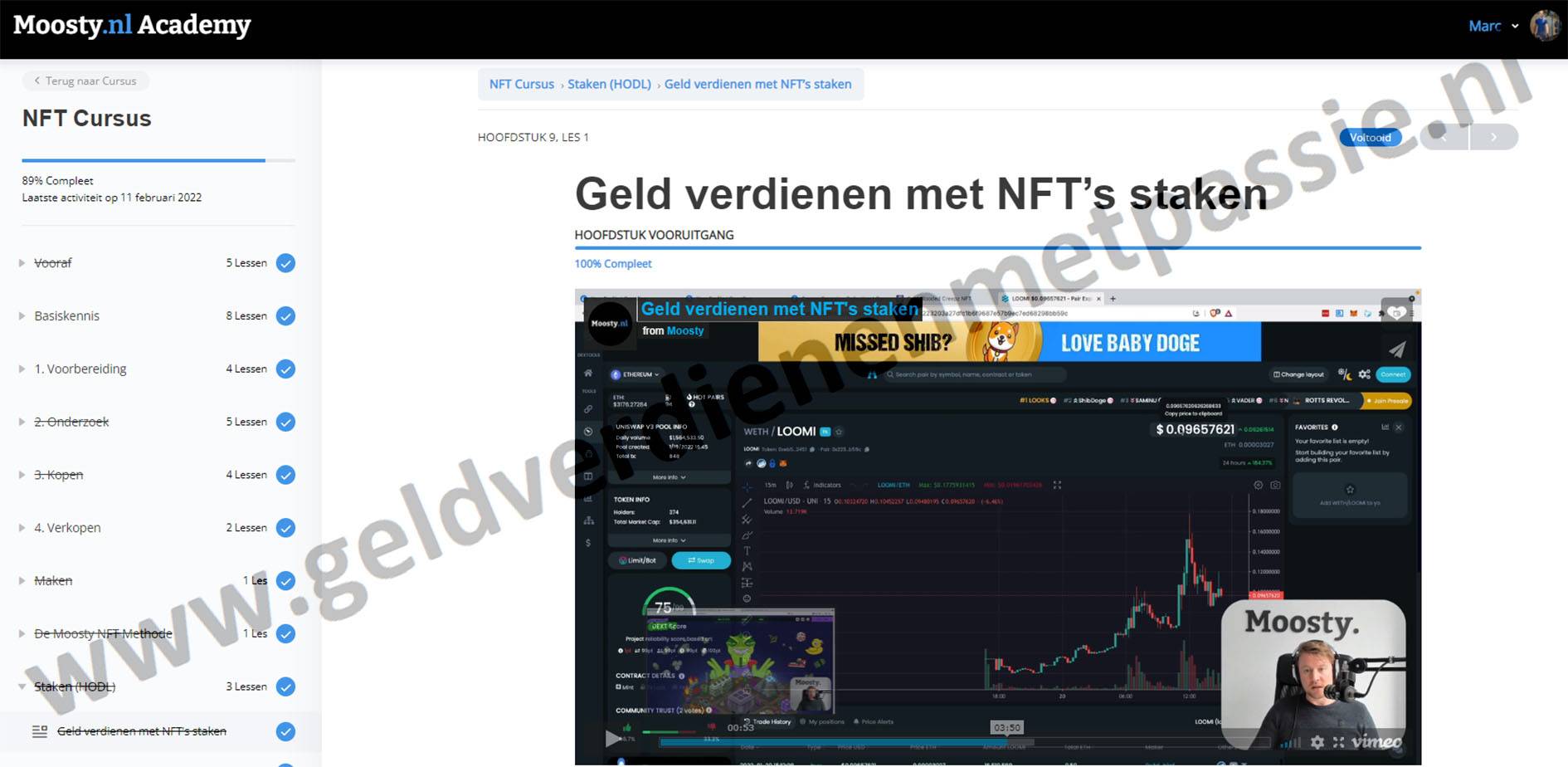 De modules en lessen zitten erg leuk in elkaar en dat maakt het dan ook erg leuk om Moosty’s NFT cursus te volgen.