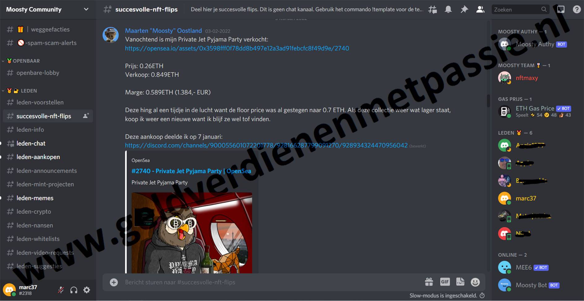 Daarnaast is het ook een groot voordeel en dat is dat je toegang krijgt tot zijn (besloten) Moosty Community op Discord en dat er altijd iemand online is waaraan je je vragen kan stellen en dat je met gelijkgestemde zitten die wellicht net als jij nog maar net begonnen zijn met het succesvol flippen van NFT’s.