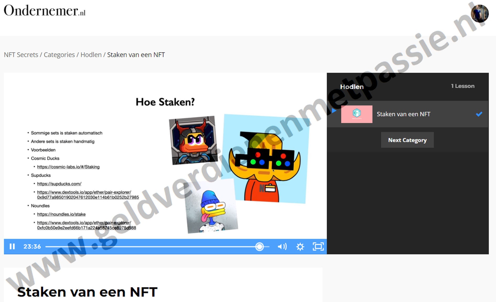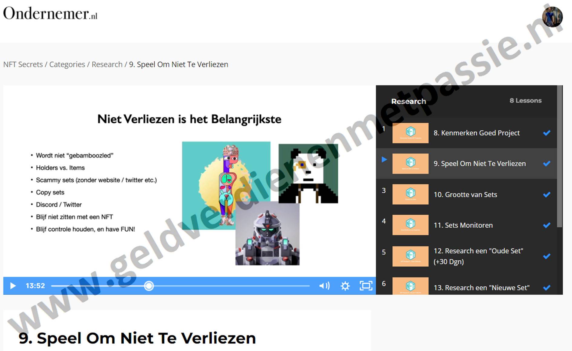 • Soms ga je vrij snel door de informatie, mocht je een totale beginner zijn dan raad ik eerder NFT Stoomcursus aan.