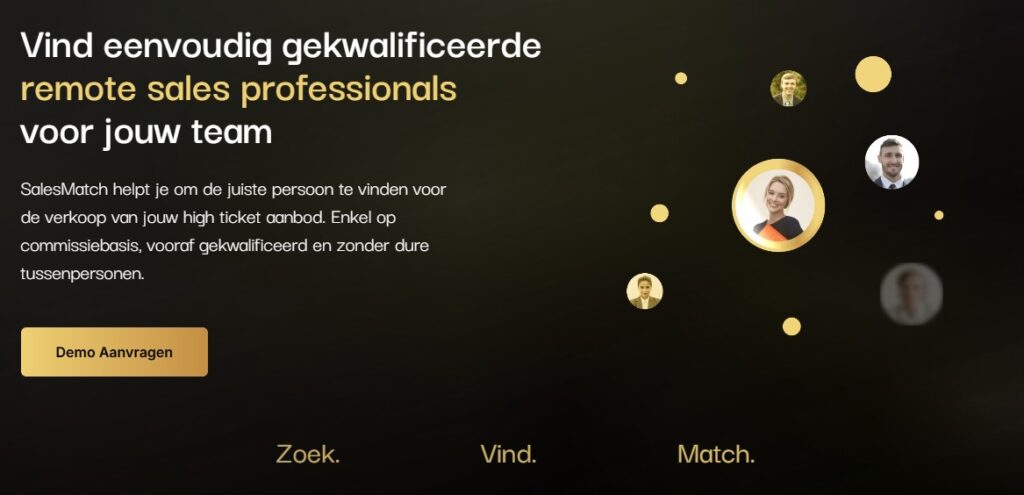 Als lid krijg je gratis toegang tot SalesMatch, een krachtig platform dat je verkoopproces versnelt. Dit systeem helpt je om snel geschikte klanten te vinden die passen bij jouw diensten. Mocht je juist geïnteresseerd zijn puur in dat platform. Geef dan kortingscode MARC100 door en je krijgt €100 korting.